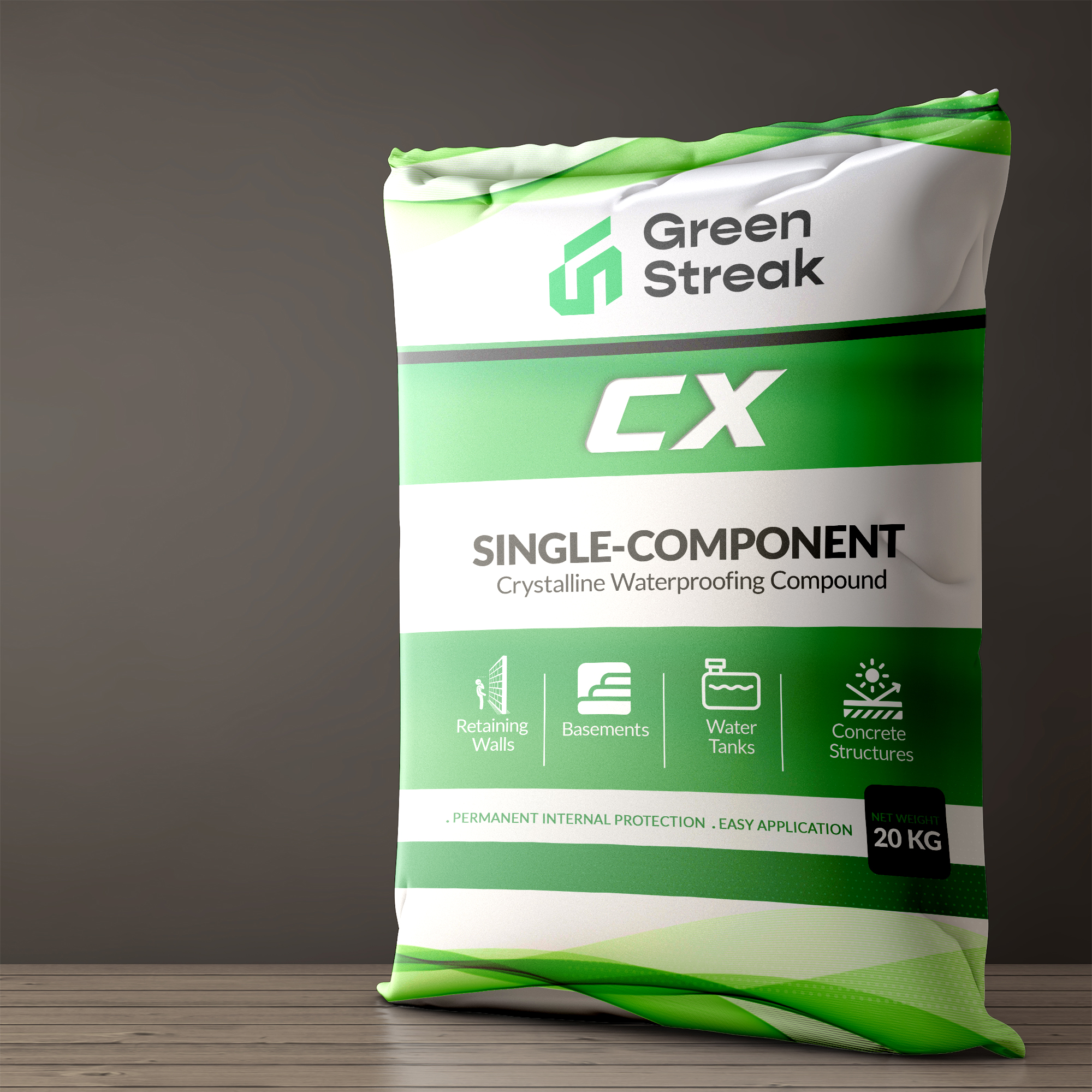 A single-component crystalline waterproofing compound that penetrates concrete and forms insoluble crystals, providing permanent internal protection against water ingress.